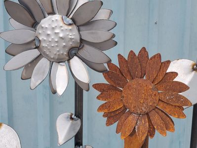 You may be wondering what happens to metal decor when it gets rained or snowed on. Won't it rust? Isn't that a bad thing? Well, not always. We create our outdoor metal signs and lawn ornaments using metal that is thicker than your typical department store yard decoration, so when it rusts on the surface, it will offer a natural protective coating that will actually keep your piece safe from the elements. Not a fan of the rusty look? We can also paint or powder-coat your item in whatever color you like or use materials that won't rust, such as stainless steel.
